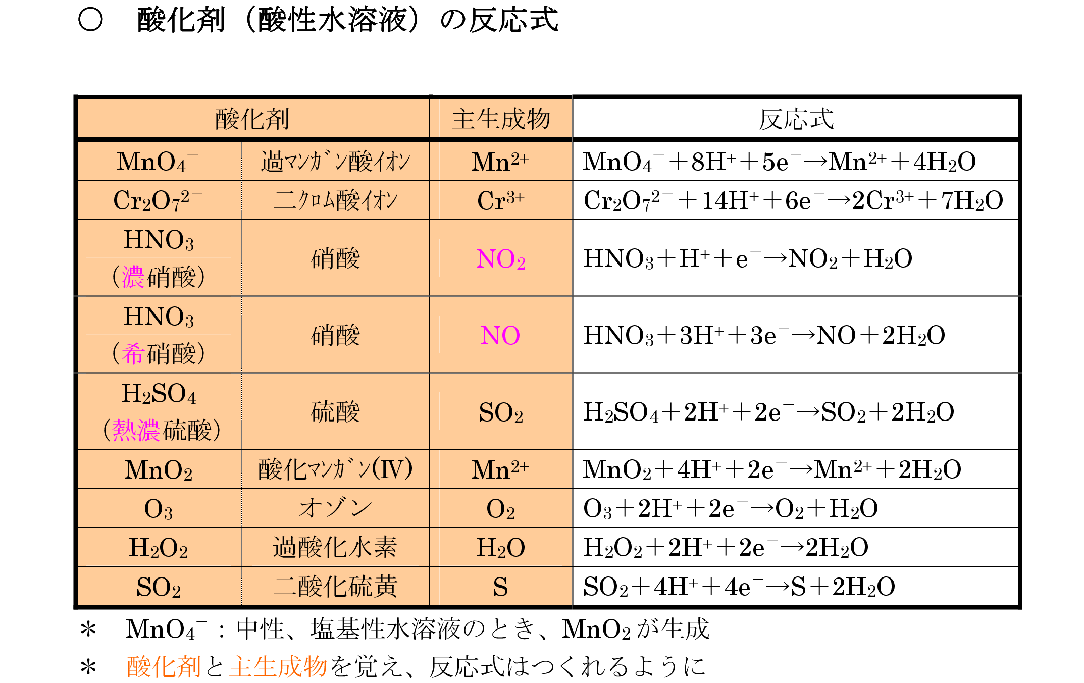 10 酸化剤の反応式